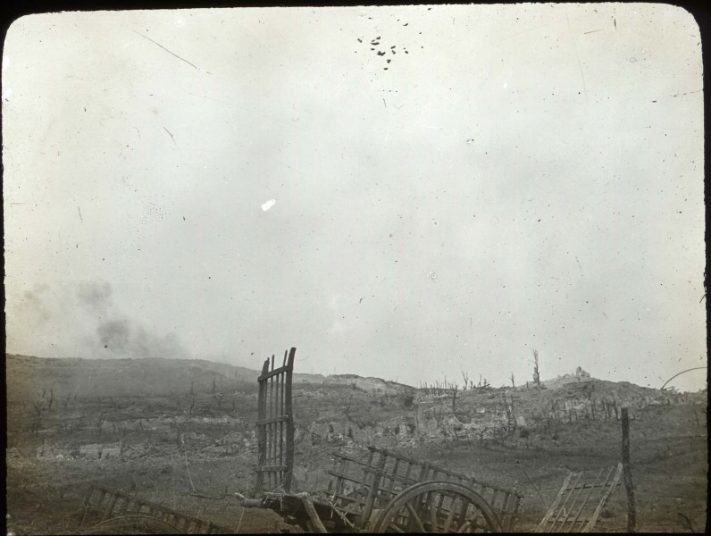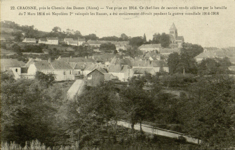 Repris aux Allemands le 5 mai 1917, Craonne, bourg de 800 habitants, a été littéralement rayé de la carte, pulvérisé par 210 000 obus en deux jours ! Son château, son église, son école, sa mairie, son café, ses maisons, tout cela n’est plus qu’un souvenir, il ne reste même pas les ruines !