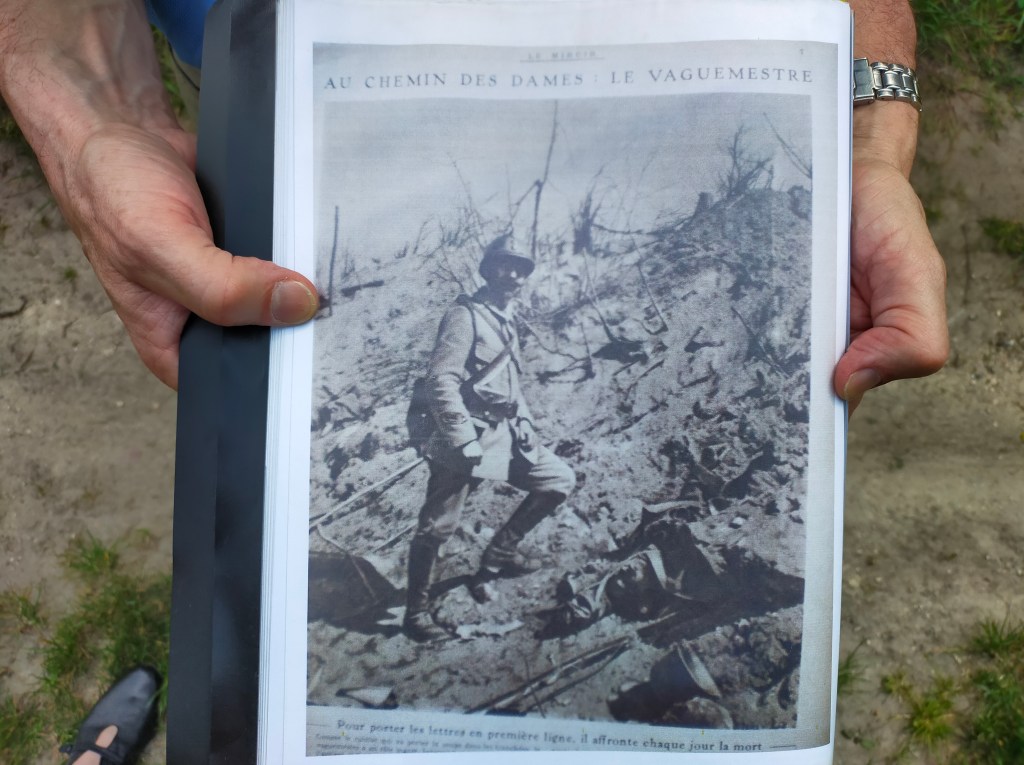 La Caverne du Dragon est le point de départ d’une randonnée qui rend hommage aux vaguemestres. Ces valeureux soldats sillonnèrent au péril de leur vie les lieux de bataille du Chemin des Dames pour transmettre leurs précieux colis. La génération des soldats qui partent à la guerre en 1914 a été massivement scolarisée grâce aux lois Ferry de 1882. La lecture du courrier et l’écriture de lettres occupent donc une place essentielle dans leur vie sur le front. On estime à 4 millions le nombre de lettres qui arrivent tous les jours sur le front, soit plusieurs milliards durant les quatre années du conflit ! Sans oublier les colis qui apportent aux soldats quelques douceurs venues de leur contrée et qu’ils partagent avec les copains. On comprend pourquoi le vaguemestre était le messie attendu chaque jour avec grande impatience, l’homme le plus guetté par les soldats !