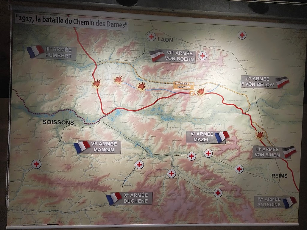 Les assauts ne parviennent même pas à dépasser la première ligne et se brisent sur des positions allemandes pratiquement intactes. Les Allemands s’étaient abrités dans des carrières souterraines, les Creutes, notamment la fameuse Caverne du Dragon. Ils ne quitteront le Chemin des Dames que dans la nuit du 1er au 2 novembre 1917, soit près de sept mois plus tard et non deux ou trois jours comme prévu… Il faut dire qu’en août 1914, on partait déjà la fleur au fusil en espérant être de retour pour les vendanges. Les soldats sont donc partis en tenue d’été… Le premier hiver fut terrible !