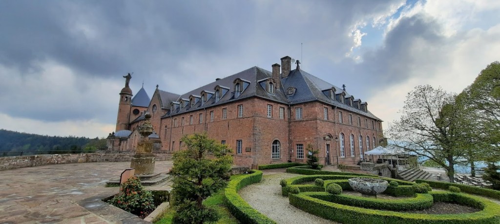 Perchée tel un nid d’aigle sur un éperon rocheux au sommet du Mont Sainte-Odile, l’abbaye de Hohenbourg est un haut-lieu spirituel et énergétique entouré de falaises de grès roses. Ce sanctuaire qui accueillit le pape Jean-Paul II en 1988 abrite une basilique du XVIIème siècle, quatre chapelles, un hôtel et un restaurant. Un chemin de croix, réalisé par le céramiste Léon Elchinger entre 1933 et 1935, orne les parois rocheuses du plateau du couvent.
