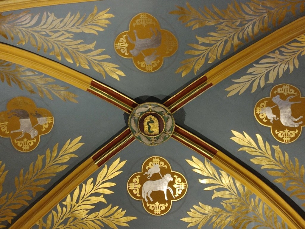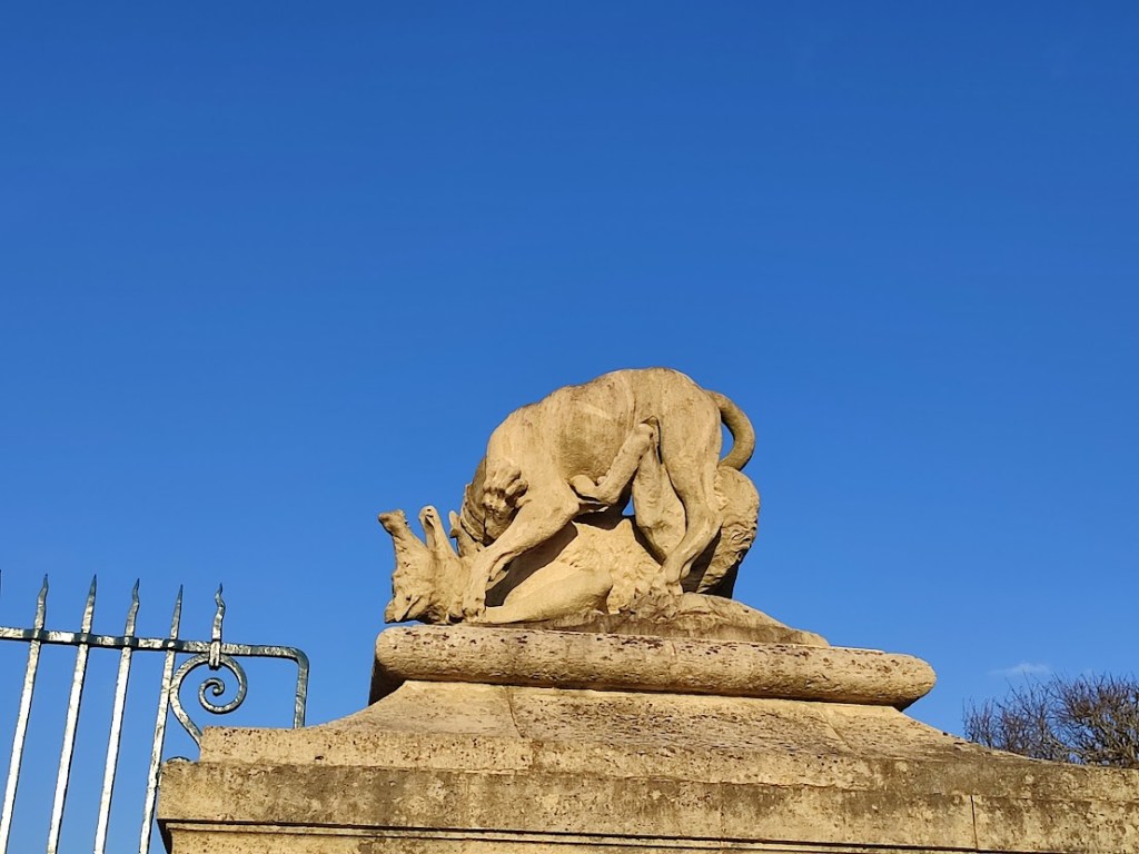 On remarque deux superbes sculptures représentant un combat d’animaux : une licorne, symbole d’innocence et de pureté (et donc ici l’intégrité de Colbert), terrassant un dragon, et un chien, symbolisant la fidélité du super ministre au Roi-Soleil, prenant le dessus sur le loup. Restons dans l’imaginaire animalier pour s’attarder sur les armoiries de Colbert : une couleuvre. Pourquoi cet animal ? Déjà, il provient du latin coluber, qui évoque furieusement le nom de Colbert. Ensuite, il reflète bien l’état d’esprit du principal ministre de Louis XIV, qui fut contrôleur général des finances, secrétaire d’État de la Maison du roi et secrétaire d’État de la Marine.