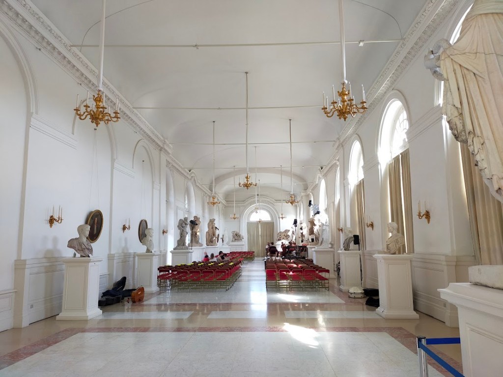 Revenons à la grille d’honneur. A gauche, voici l’Orangerie construite en 1686 par Jules Hardouin-Mansart, l’architecte du roi, à l’origine entre autres de la galerie des Glaces du château de Versailles et de l’église du Dôme de l’hôtel des Invalides à Paris. Elle fut édifiée pour le marquis de Seignelay, fils aîné de Colbert, qui hérita du domaine à la mort de son père en 1683. Elle n’a pas servi à accueillir des orangers, mais fut dès l’origine une galerie d’art pour abriter les collections du marquis de Seignelay. On peut désormais y admirer de nombreuses sculptures originales (celles exposées dans le parc sont généralement des copies). Le lieu abrite régulièrement des concerts et spectacles, notamment le prestigieux Festival de musique de chambre de l’Orangerie, si bien qu’il n’est pas toujours facile d’y pénétrer, même muni du ticket du château qui en donne accès…