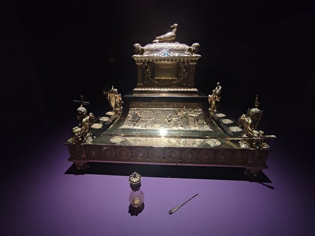 La scénographie transporte littéralement le visiteur à Reims : costumes d’apparat, décors reconstitués, sons d’époque (notamment l’opéra Le Voyage à Reims de Rossini), tout est conçu pour faire revivre cette cérémonie hors norme. Un arrêt marquant est celui de la Sainte Ampoule, flacon mythique contenant l’huile sacrée utilisée pour oindre les rois de France, selon une tradition remontant au baptême de Clovis par Saint Remi.
