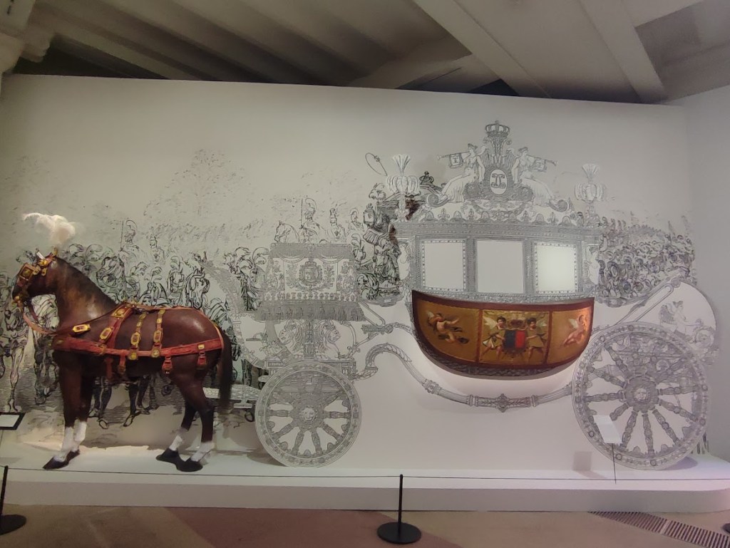Mais une superbe reproduction permet d’en admirer les détails majestueux. Et pour mieux se projeter dans cette procession royale, la musique de Rossini accompagne la scénographie… « Le Voyage à Reims », bien sûr !